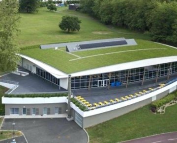 Le projet a été retenu notamment pour sa forme, son implantation et sa toiture végétalisée parfaitement intégrés dans une grande prairie en pente.